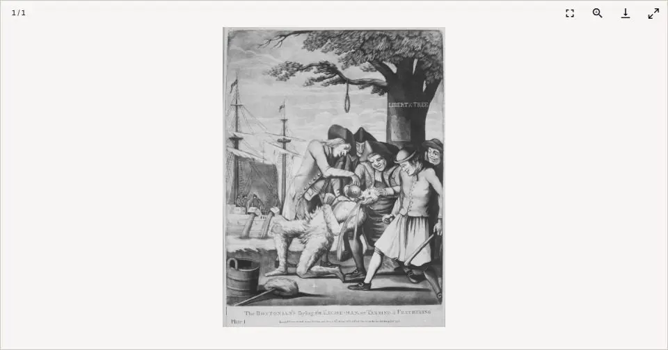 - Based on the background action in the image, what seems to be the colonial grievance at issue?