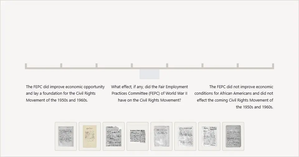 Place the documents on the scale according to whether they show Civil Rights advances or that the FEPC was ineffective in improving conditions.