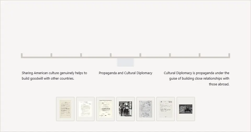 Closely analyze each primary source below by clicking on the orange new window icon to view the entire document or watch the video. Then move each box to the scale according to which interpretation it supports. The documents and images in this activity may seem to lack connection. However, by keeping the above questions in mind, you’ll be able to identify the relationships between them and explore the goal of cultural diplomacy.