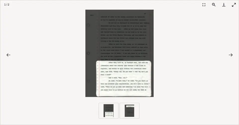 - Click on “View Primary Source Details” and look at page 3 of the document. What was Hamer’s response to the plantation owner after he threatened her? And what happened as a result?