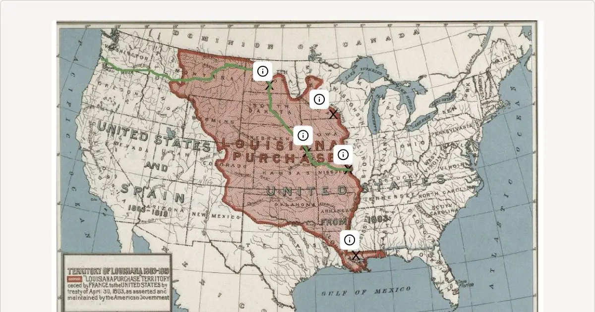 Examine the documents related to the Louisiana Purchase and the Lewis and Clark Expedition. Determine where different groups were involved and use the hints to place the documents on the X’s on the map.