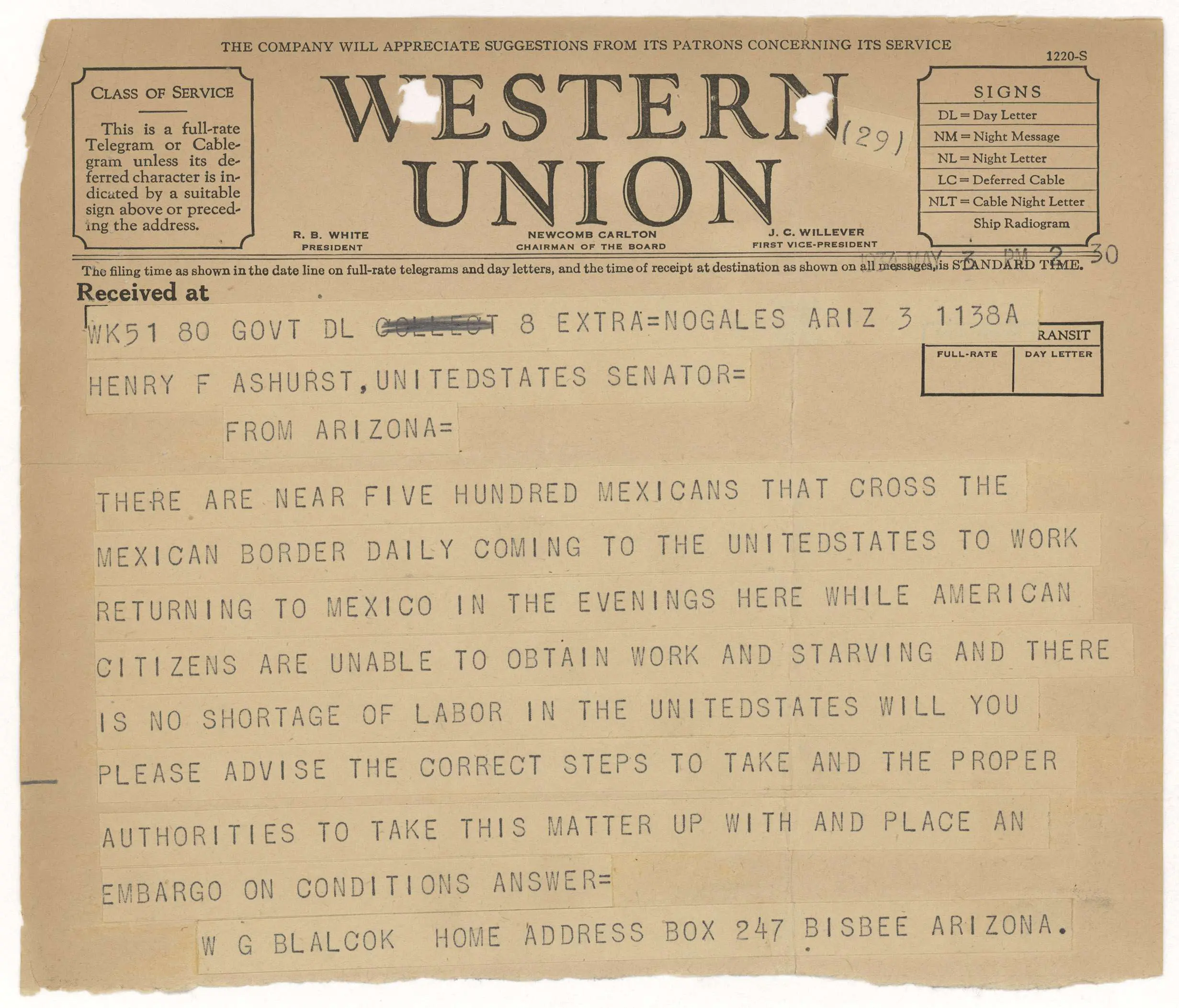 - Was Blalcok justified in asking the senator for an embargo on Mexican workers?