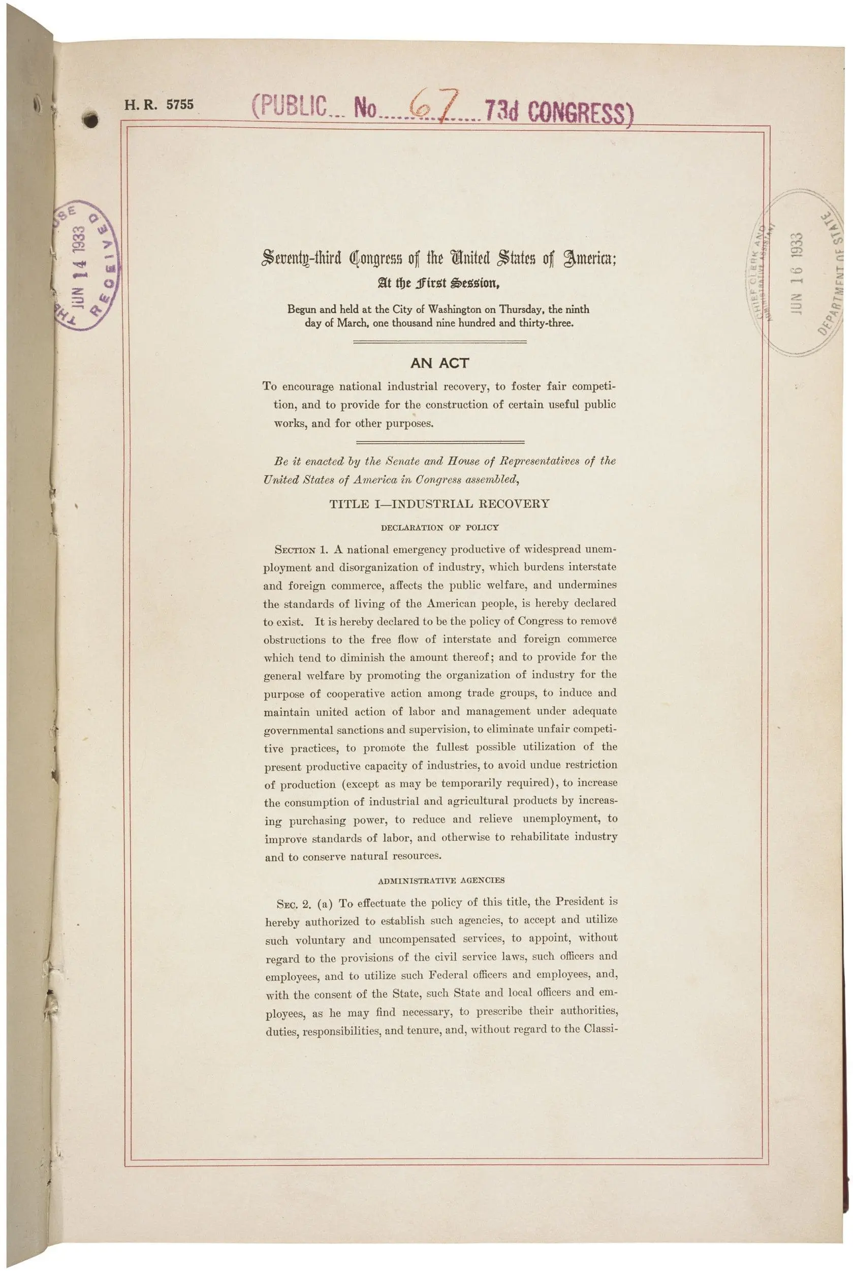 After reading the page of the National Industrial Recovery Act, answer the question: Was the Supreme Court right in striking down an act that was made to better the economy during this period?