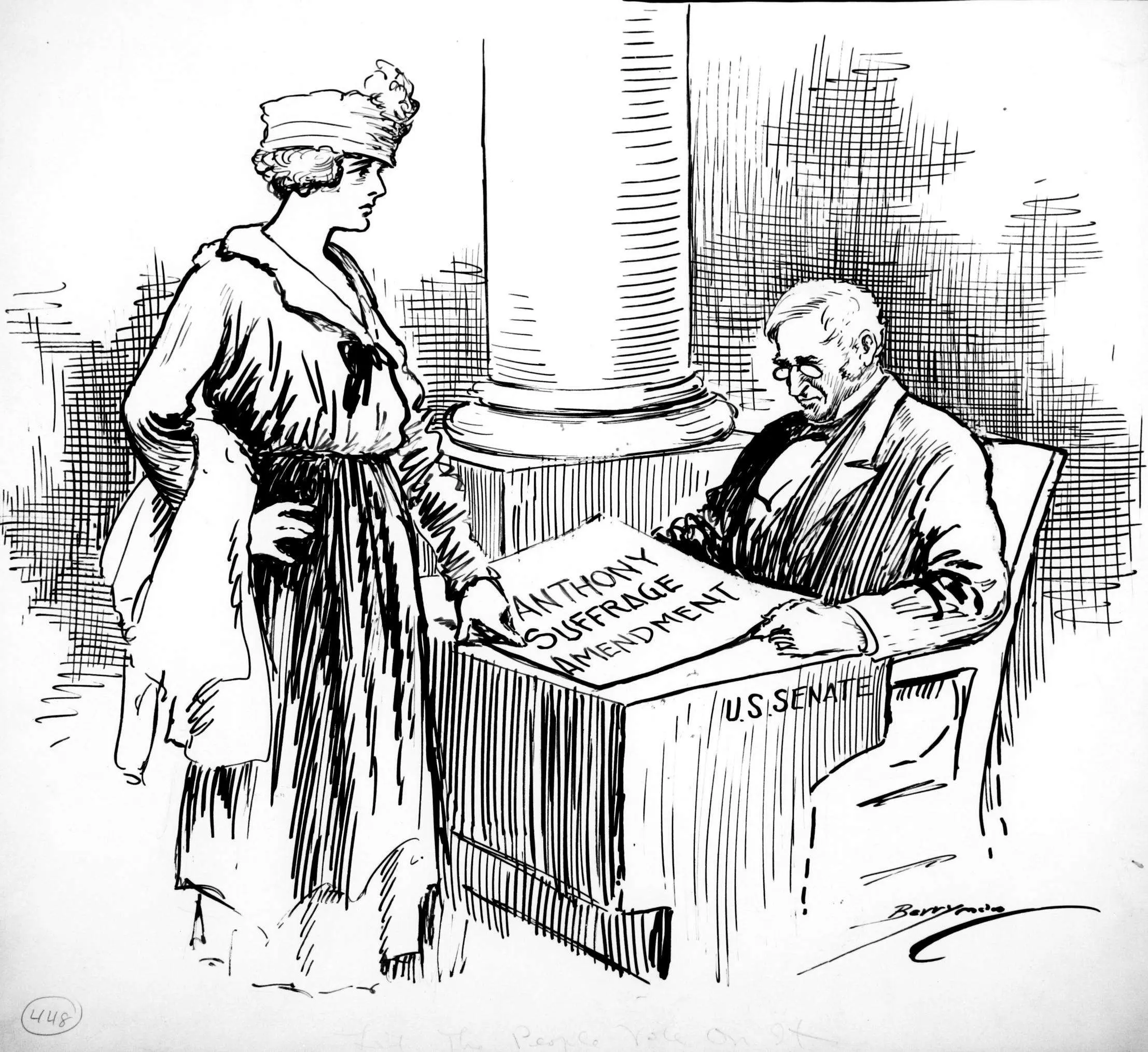 Write down the details you notice from the Petition for Universal Suffrage and answer the questions that follow. Next, focus on the photograph of “Silent Sentinel” Alison Turnbull Hopkins outside the White House and answer the questions that follow. Lastly, analyze the cartoon Let the People Vote on it and answer the questions that follow.
