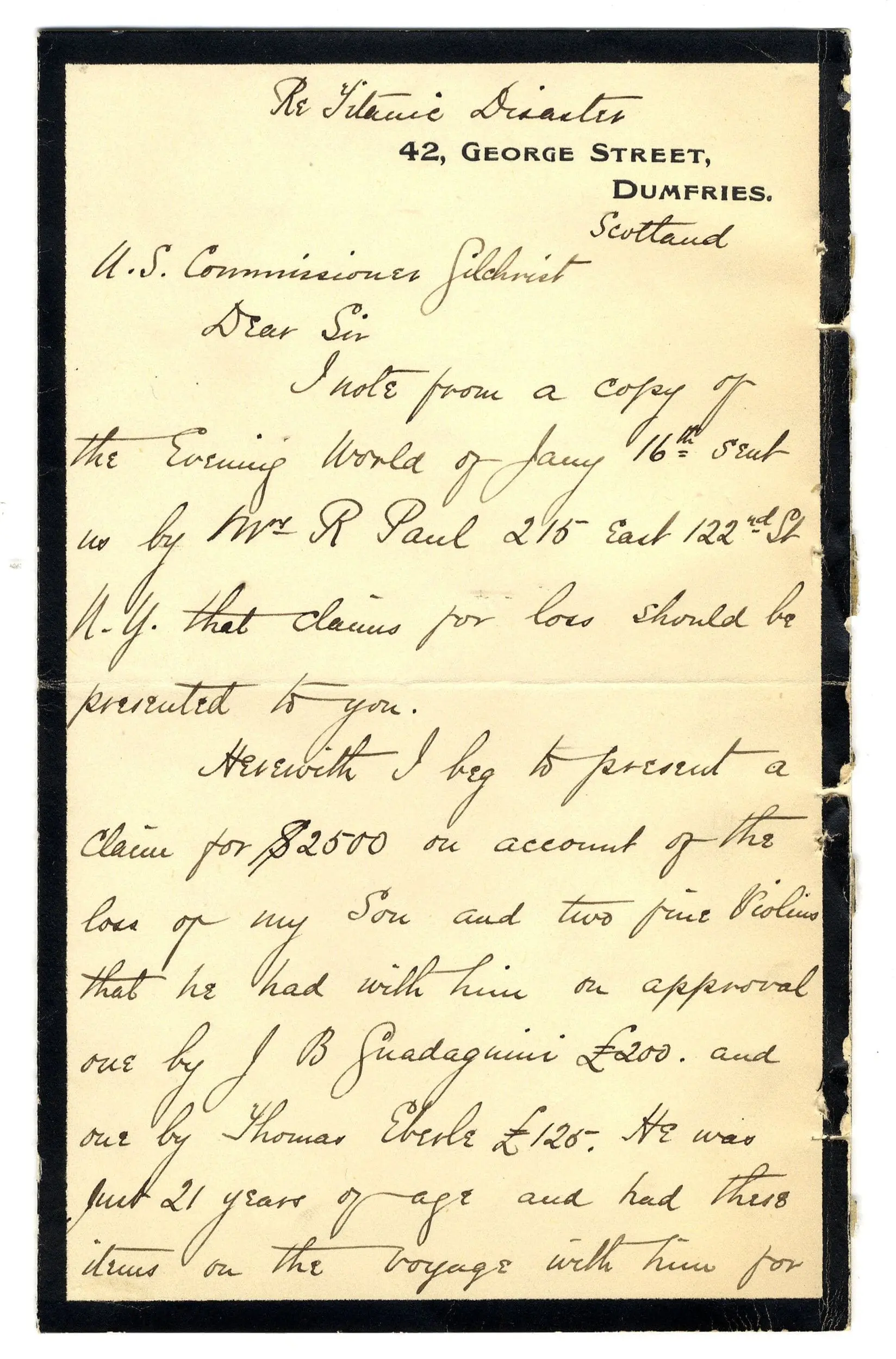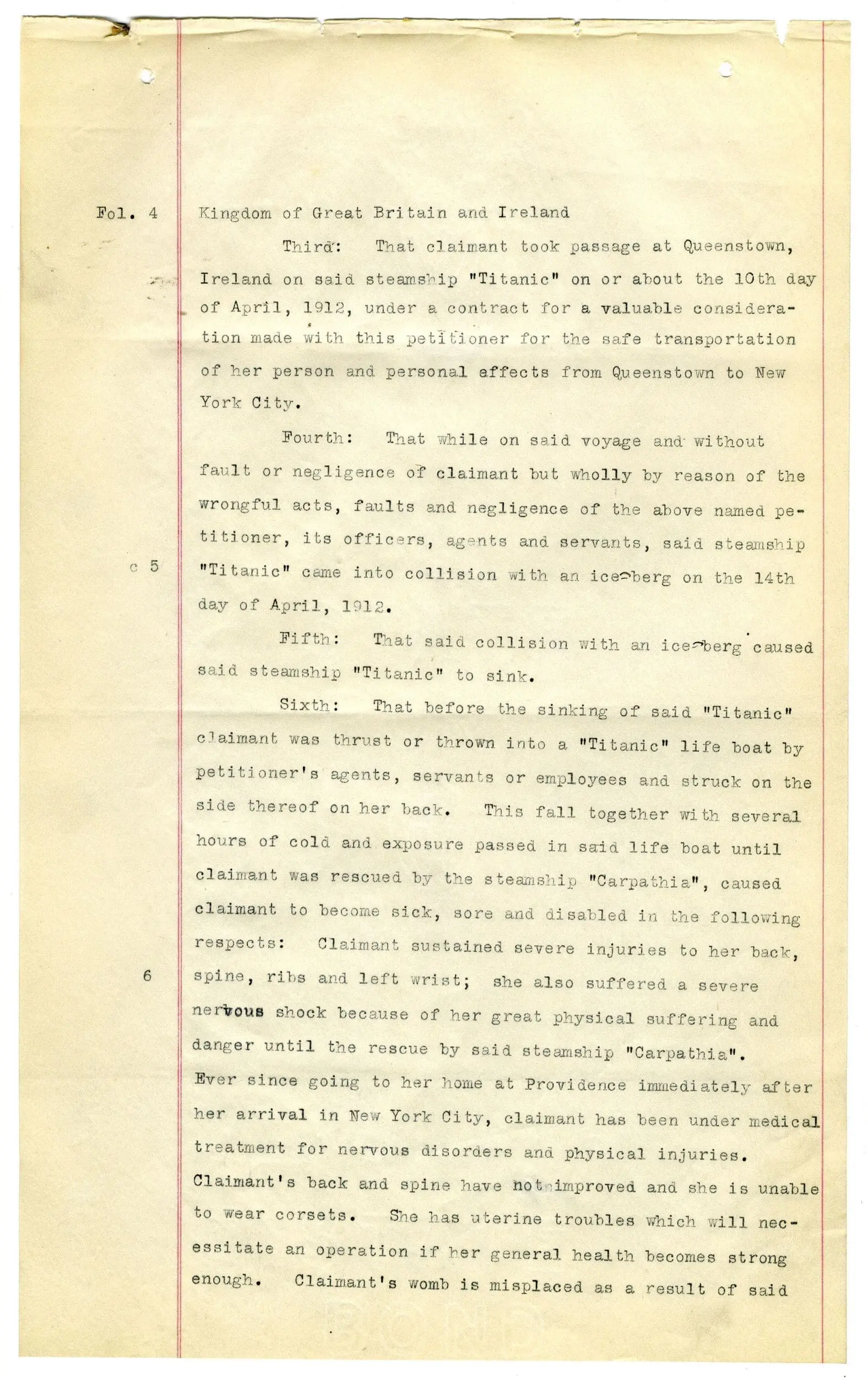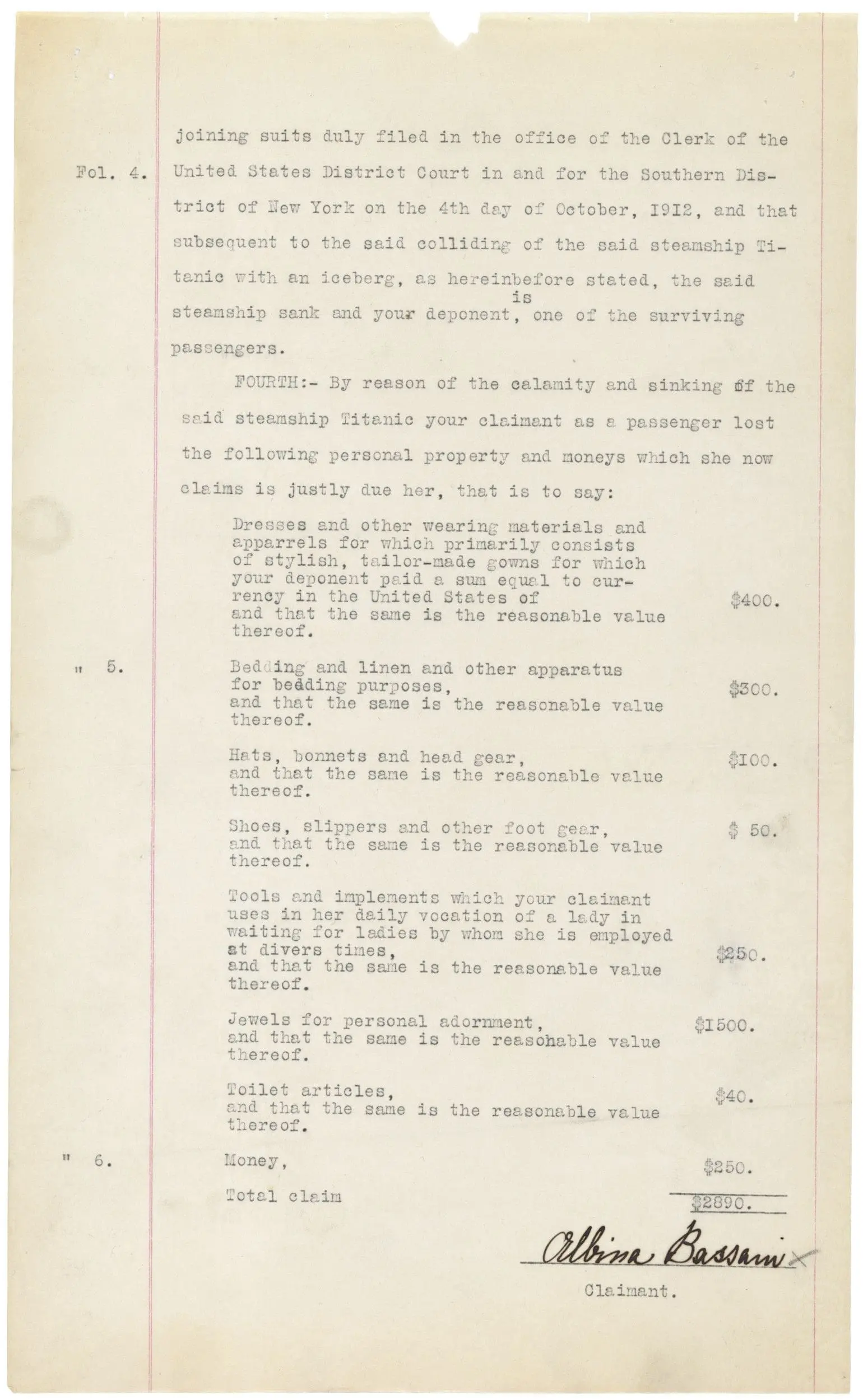 After the Titanic sank to the bottom of the Atlantic Ocean on April 15, 1912, hundreds of the survivors, families of victims, and owners of cargo filed claims against the White Star Line for loss of life, property, and for injuries sustained. Their claims totaled $16.4 million. Examine their claims to see the values of items lost, how people survived the disaster, and the social class differences aboard history’s most infamous ship.
