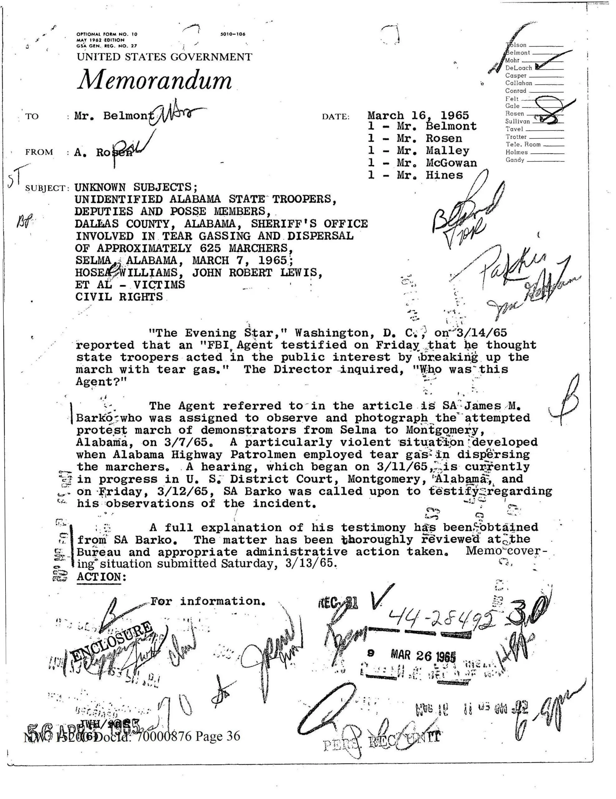 On Sunday morning, March 7, 1965, about 600 people met after church in Selma, Alabama, to begin a 54-mile march to Montgomery. They were protesting continued violence and civil rights discrimination — and to bring attention to the need for Federal voting rights legislation that would ensure African-Americans couldn’t be denied the right to vote in any state. News and images of the violent response from Alabama State Troopers spread in newspapers, magazines, and television. The day came to be known as “Bloody Sunday.”