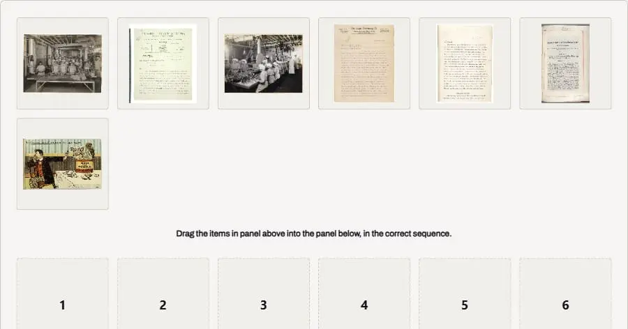 Working in groups, use contextual clues to place these documents in chronological order. After you have put them in order, as a group choose which document you believe had the biggest influence on the government passing food safety laws. Justify your position.