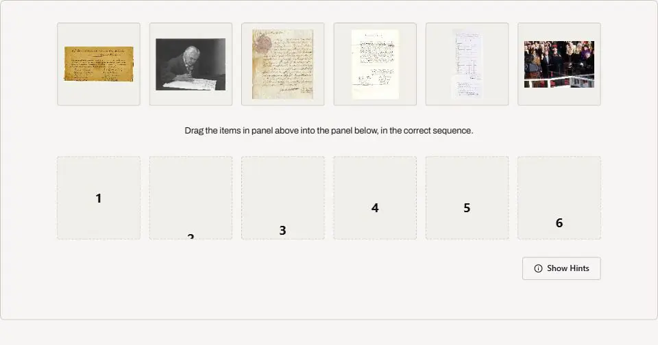 Read the basic steps in the process below. Then look at the images that follow and click on the “Open in New Window” icon for each one to see it more closely. Put the images in the correct order following the electoral college process (not by date on the documents since they are from different elections.) Click “Show Hints” for help.