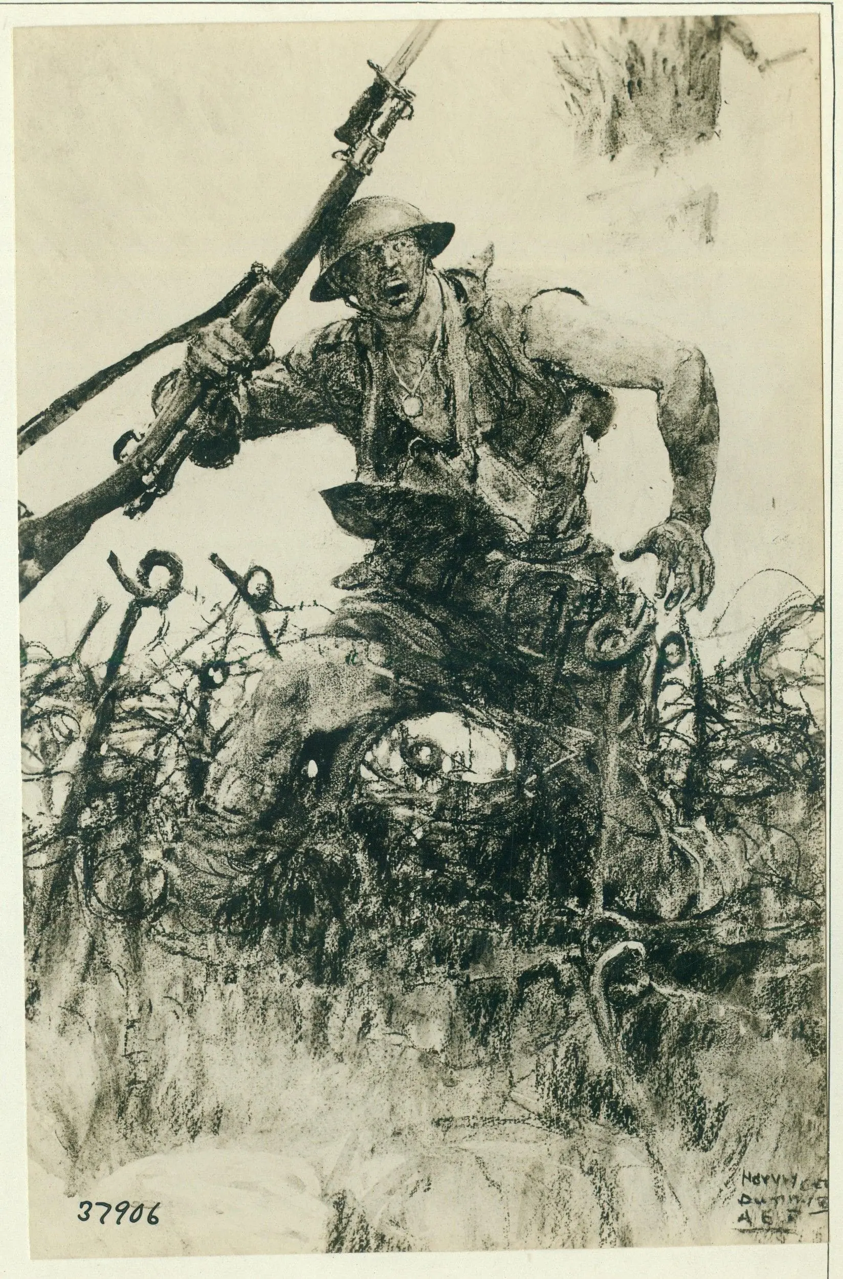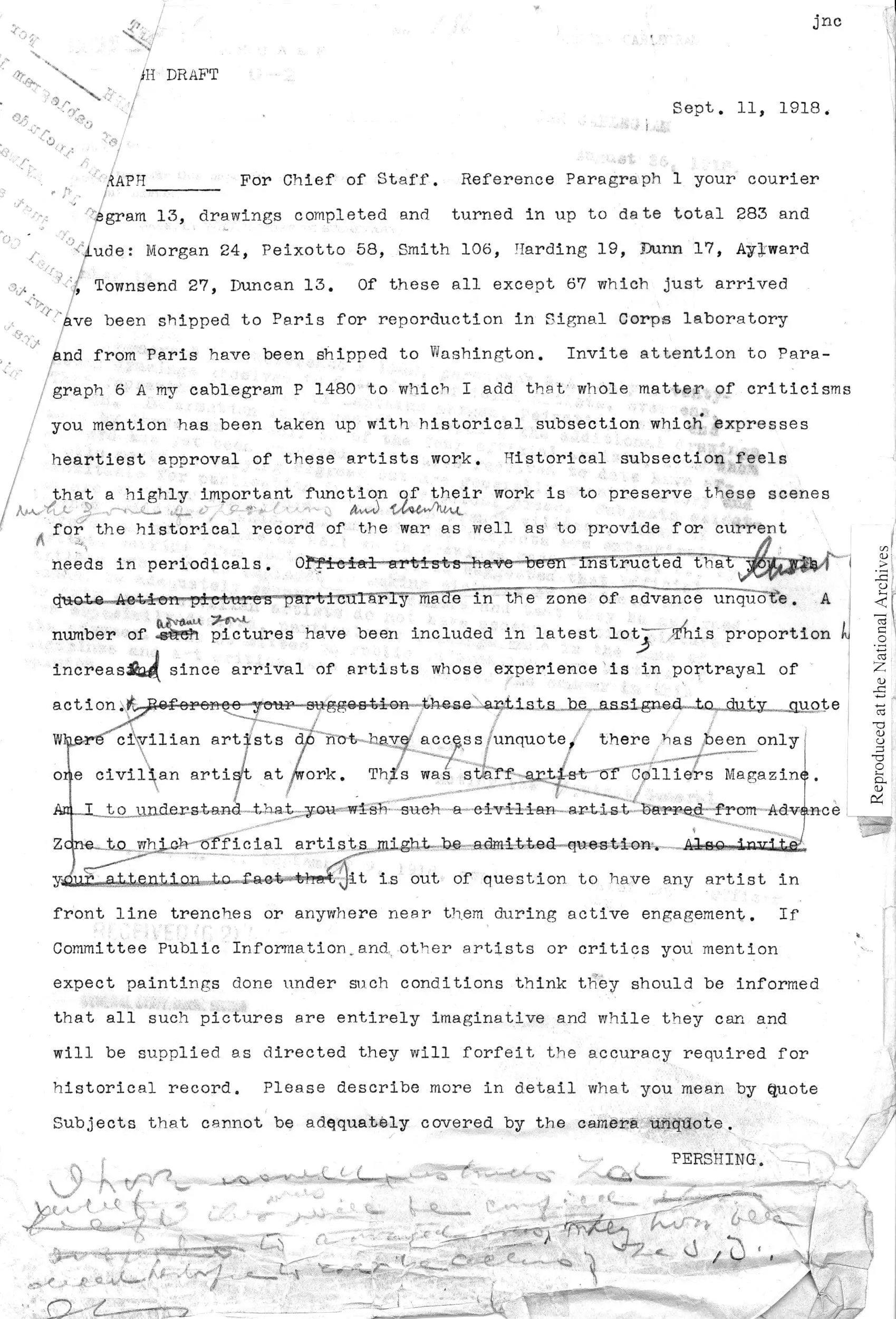 Analyze the documents and images you will see. Answer the questions to explore the conflict between the artists, the CPI, and the Army about how the artists presented the war for an American audience.