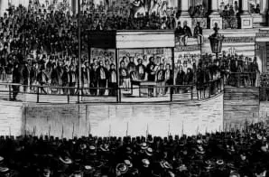Inauguration of the Sixteenth President of the United States — Scene in Front of the Capitol at Washington, D.C. — Abraham Lincoln, President-Elect, Reading his Inaugural Address, Previous to Receiving the Oath of Office from Chief Justice Taney, March 4, 1861.