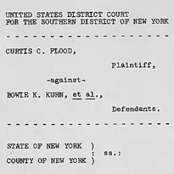 This document was filed in the case of Curtis C. Flood, Plaintiff, vs. Bowie K. Kuhn, et al. (Bowie K. Kuhn, Commissioner of Baseball; Charles S. Feeney, President of the National League; Joseph E. Cronin, President of the American League; and 24 professional baseball teams).
