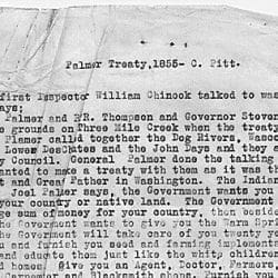 This affidavit documents one Native American’s story of events surrounding the signing of a treaty at Warm Springs, Oregon, in 1855. The treaty related to litigation occurring in 1915 that involved Columbia River fishing rights.