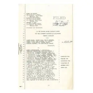 The selected documents include the introduction to the case, which accuses the major Hollywood studios involved of violating the Sherman Anti-Trust Act.