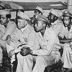 Full Citation: 208-N-32987; American pilots of a P-51 Mustang fighter group; 9/1944; Records of the Office of War Information, Record Group 208; National Archives at College Park, College Park, MD. [Online Version, https://docsteach.org/document/american-pilots-of-a-p51-mustang-fighter-group/, April 7, 2026]