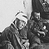 On the porch of an emergency hospital these released American prisoners of war, liberated by U.S. Rangers from Cabanatuan prison camp on Luzon, Philippine Islands, wait for transfer to a base hospital.