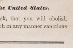Sixty-five Philadelphia women signed and presented this petition to Congress in 1844, urging the abolition of slavery. At that time, women in the United States were unable to vote. To make their voices heard on important social issues of their day—slavery and drunkenness—women organized themselves and used petitions to influence Congress. Collectively, the signatures of approximately 3 million women abolitionists, including these petitioners from Pennsylvania, sent a powerful antislavery statement to Congress.