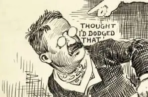 This political cartoon criticizes President Theodore Roosevelt for campaigning for a third term of office in 1912. By limiting his own service as President to two terms, George Washington had set a precedent that lasted for many years. The only President elected more than twice was Franklin D. Roosevelt (Teddy’s cousin), who served four consecutive terms from 1933 to 1945. After his Presidency, an amendment was added to the Constitution limiting a President’s time in office to two terms.