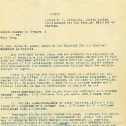 This is a testimony to include in the appeal of Wong Tong. It comes from a case file on Wong Tong. This document was digitized by teachers in our Primarily Teaching 2015 Summer Workshop in Washington, D.C.