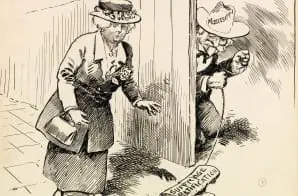 Finally on June 4, 1919, the 19th amendment passed both houses of Congress and was sent to the states for ratification. Many states quickly approved the 19th Amendment; and by the end of March 1920, only one additional state was needed for ratification. Mississippi could have been that state, but it rejected the amendment on March 29. In this image, political cartoonist Clifford Berryman portrays the Mississippi rejection as an April Fool’s joke on supporters for woman suffrage.