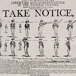 Full Citation: War and Conflict 70; 208-PR-10J(1); Photograph of Army Recruiting Notice; 1799; Photographs Used in Publications, 1943–1945; Records of the Office of War Information, Record Group 208; National Archives at College Park, College Park, MD. [Online Version, https://docsteach.org/document/army-recruiting-notice/, April 4, 2026]