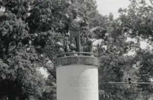 This monument of Richmond native Arthur Ashe by Paul DiPasquale was unveiled in 1996 in Richmond, Virginia. Built on Monument Avenue, an area in Richmond that had previously been decorated with statues to Confederate leaders, Ashe is depicted with a tennis racket in one hand and books in the other.