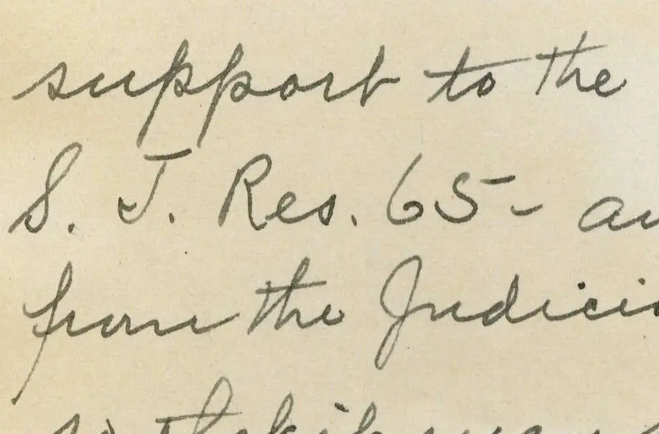 Carol Taylor Bogardus (“Mrs. EW”) sent this letter to Senator Henry F. Ashurst. She urges him to support the Equal Rights Amendment and to vote to report it from the Judiciary Committee to the full Senate so that it may be considered by the Senate in the current session.