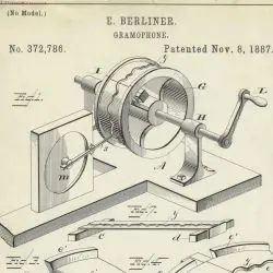 Full Citation: Patent Drawing for E. Berliner’s Gramophone; 11/8/1887; Utility Patent Number 372786; Utility Patent Drawings, 1837 – 1911; Records of the Patent and Trademark Office, 1836 – 1978, Record Group 241; National Archives at College Park, College Park, MD. [Online Version, https://docsteach.org/document/berliner-gramophone/, April 3, 2026]