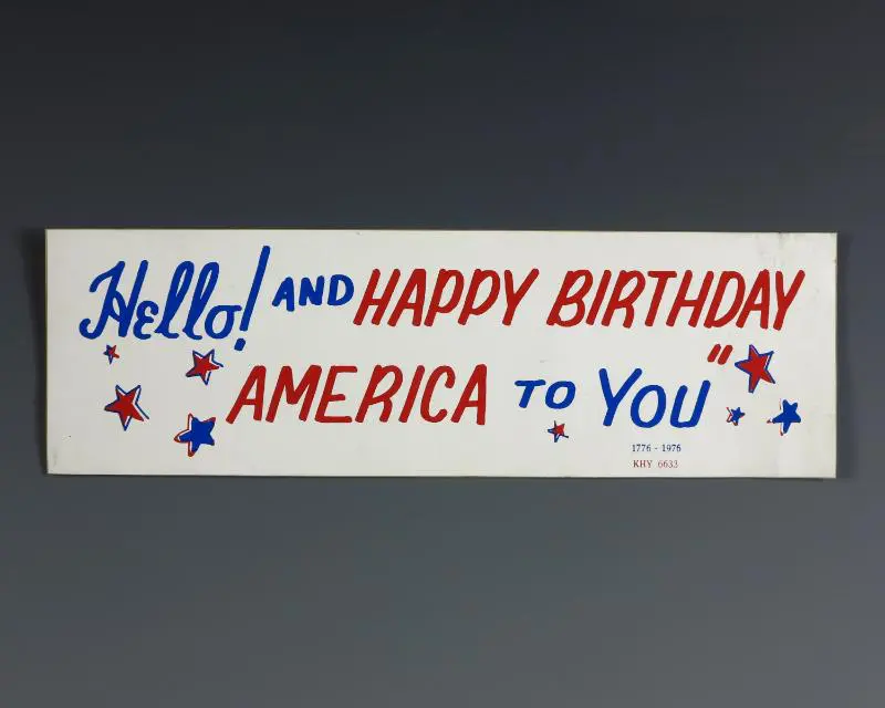 Full Citation: 1988.780.1.1; Bicentennial Bumper Sticker; ca. 1976; Bicentennial Gifts Given to President Gerald R. Ford, 1977–2016; Collection GRF-MCOLL: Gerald R. Ford Museum Collection,; Gerald R. Ford Museum, Grand Rapids, MI. [Online Version, https://docsteach.org/document/bicentennial-bumper-sticker/, April 13, 2026]