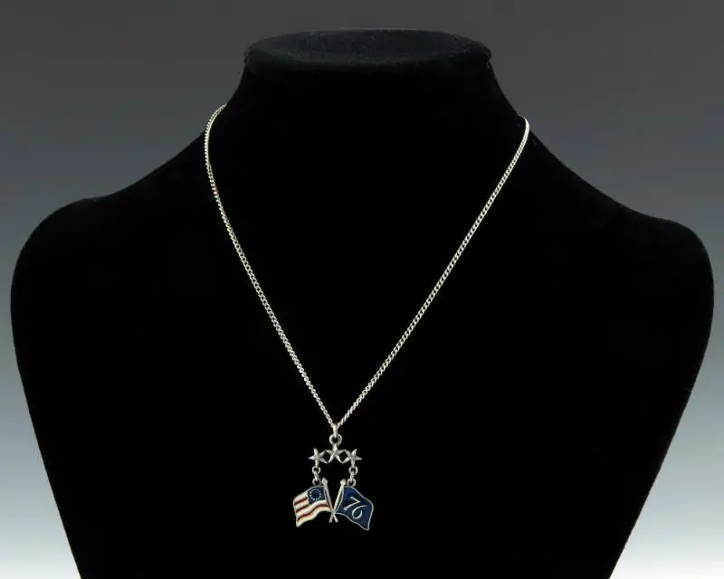 Full Citation: 1991.62.1; Bicentennial Flag Necklace; ca. 1976; Bicentennial Gifts Given to President Gerald R. Ford, 1977–2016; Collection GRF-MCOLL: Gerald R. Ford Museum Collection,; Gerald R. Ford Museum, Grand Rapids, MI. [Online Version, https://docsteach.org/document/bicentennial-flag-necklace/, April 11, 2026]