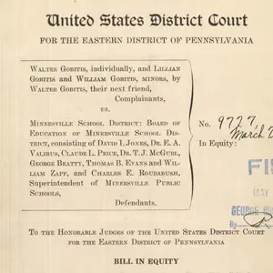 Full Citation: Bill in Equity Filed in the Gobitis Case; 5/3/1937; Walter Gobitis versus Minersville School District, et al.; Equity #9727; Equity Case Files, 1843 – 1938; Records of District Courts of the United States, Record Group 21; National Archives at Philadelphia, Philadelphia, PA. [Online Version, https://docsteach.org/document/bill-in-equity-gobitis/, April 8, 2026]
