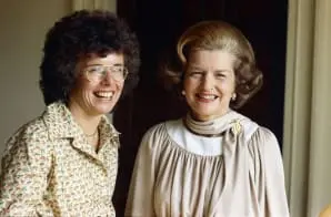 Full Citation: Photograph WHPO-A5606-07; Billie Jean King and First Lady Betty Ford in the West Sitting Hall at the White House; 7/21/1975; Gerald R. Ford White House Photographs, 8/9/1974 – 1/20/1977; Collection GRF-WHPO: White House Photographic Office Collection (Ford Administration),; Gerald R. Ford Library, Ann Arbor, MI. [Online Version, https://docsteach.org/document/billie-jean-king-betty-ford/, April 1, 2026]