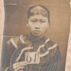 This is a case file for Jew Yeung, who wanted to re-enter the United States from China. She had a certificate of residence, but immigration officials tried to determine if the young woman who was trying to enter was the same person pictured in the certificate of residence. Pages 52–57 are shown. It is featured in “The Chinese Exclusion Act: Researching in the National Archives,” available on iBooks.
