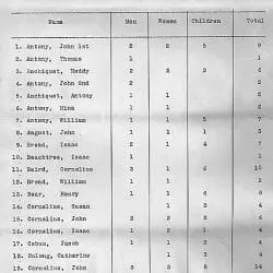 Full Citation: Census of the First Christian and Orchard Parties of Oneida Indians, residing at Green Bay, Wisconsin Territory, taken by Henry S. Baird, U.S. Commissioner, on November 15, 1838, under provisions of t; 11/15/1838; Records of the Bureau of Indian Affairs, Record Group 75. [Online Version, https://docsteach.org/document/census-of-the-first-christian-and-orchard-parties-of-oneida-indians-residing-at-green-bay-wisconsin-territory-taken-by-henry-s-baird-us-commissioner-on-november-15-1838-under-provisions-of-the-treaty/, April 17, 2026]