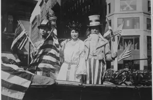 The original description for this photograph reads; Chinese Day in the Fourth Liberty Loan Campaign was appropriately celebrated. One of the features of the Chinese Parade is shown. China, Liberty, and Uncle Sam united. Underwood and Underwood.