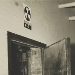 This is a photograph of a fallout shelter sign in a doorway at Columbus High School in Boston, Massachusetts. This document was digitized by teachers in our Primarily Teaching 2013 Summer Workshop at our Boston location.