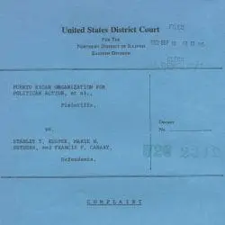 This is the complaint filed in the case Puerto Rican Organization for Political Action, Jesus Gomez, Geraldo Gomez, Victor Gomez, Abdona Vargas, and other others similarly situated v. Stanley T. Kusper, Marie H. Suthers, and Francis P. Canary, in their capacity as the Board of Election Commissioners of the City of Chicago. This is a civil case in which the plaintiffs, Jesus Gomez, Geraldo Gomez, Victor Gomez, Abdona Vargas, and the Puerto Rican Organization for Political Action, sought to compel the defendants, the City of Chicago Board of Election Commissioners, to provide voting assistance in the Spanish language to United States citizens of Puerto Rican birth, who were unable to use the English language.