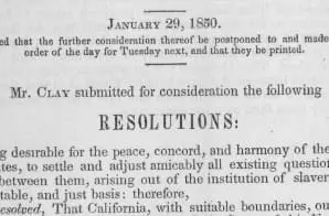 Because everyone looked to the Senate to defuse the growing crisis, Senator Henry Clay of Kentucky proposed a series of resolutions designed to “adjust amicably all existing questions of controversy…arising out of the institution of slavery.” Clay attempted to frame his compromise so that nationally minded senators would vote for legislation in the interest of the Union.