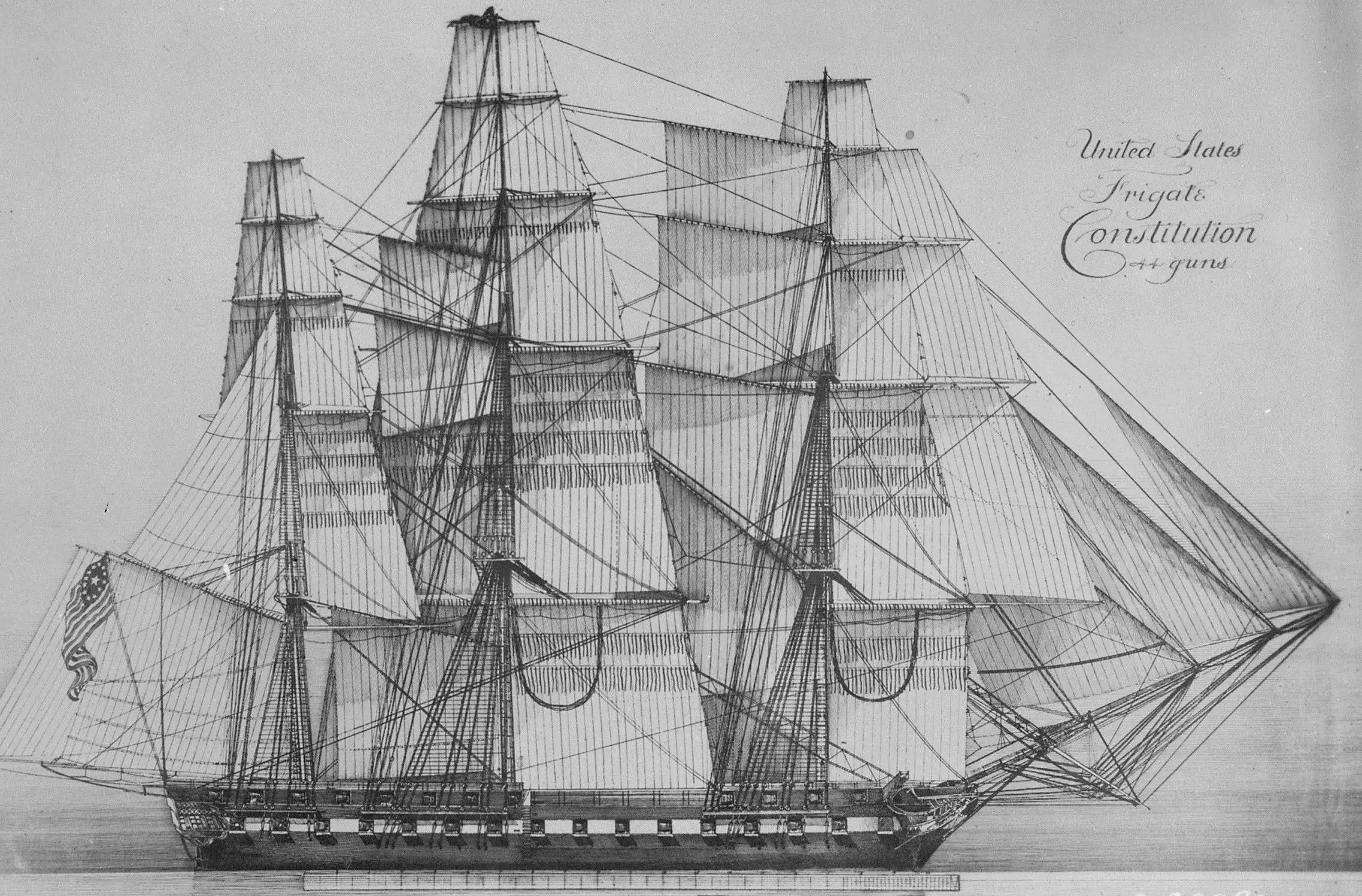 Full Citation: Photograph 19-N-9982; Constitution. Sail plan; Naval History Photographs (Bureau of Ships), 1883 – 1941; Records of the Bureau of Ships, Record Group 19; National Archives at College Park, College Park, MD. [Online Version, https://docsteach.org/document/constitution-sail-plan/, December 19, 2025]