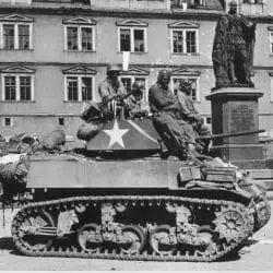 Full Citation: Crews of U.S. light tanks stand by awaiting call to clean out scattered Nazi machine gun nests in Coburg, Germany; 4/25/1945; Records of the Office of War Information, Record Group 208. [Online Version, https://docsteach.org/document/crews-of-us-light-tanks-stand-by-awaiting-call-to-clean-out-scattered-nazi-machine-gun-nests-in-coburg-germany/, December 16, 2025]