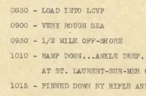 1010 – RAMP DOWN…ANKLE DEEP..WONDERFUL HANDLING OF CRAFT..LANDED AT ST. LAURENT-SUR-MER ON EASY GREEN BEACH.
