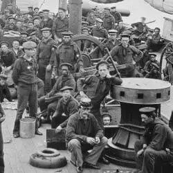 An integrated crew served on this U.S. gunboat, probably the Mendota. During the Civil War, 18,000 black men–and more than a dozen women–served in the U.S. Navy. However, black sailors served only in the lowest ranks. On the Mendota, many of the black crew members were recently freed slaves.
