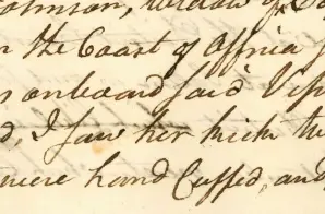 and I heard her give directions to some sailors to put some the slaves in Irons, that were without them – and I heard her say to some of the slaves that were in Irons that, they would not come out of Irons again very soon – And I understood she was owner of the said Vessel, which she appeared to be, from her behavior onboard – Phineas Dean