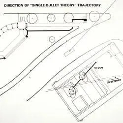 As the President’s vehicle turned in front of the Texas School Book Depository shots rang out. Many theories exist surrounding how many bullets were fired and the number of shooters. This diagram supports the “single-bullet” theory.