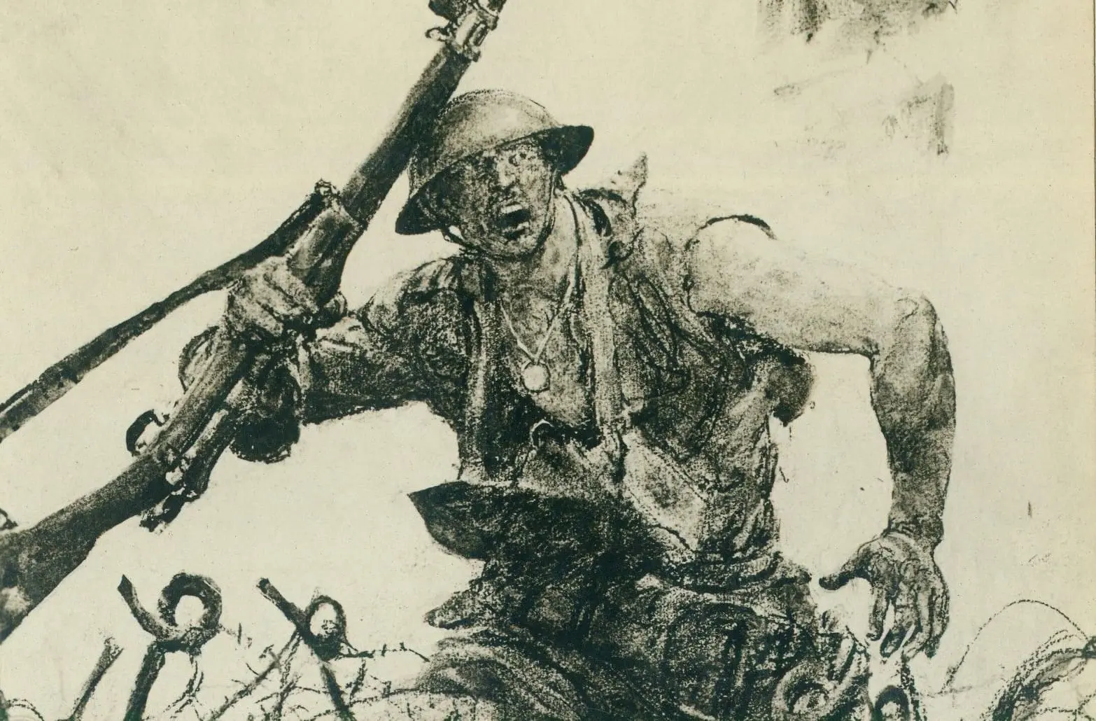 Official American military artist Captain Harvey Dunn made this drawing.