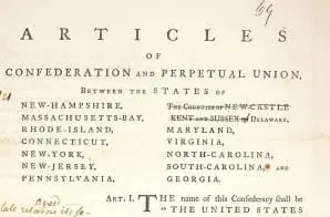 Full Citation: Printed and Corrected Draft of the Articles of Confederation; 1777; Articles of Confederation, Plans and Drafts of Treaties, and Other Miscellaneous Records; Papers of the Continental Congress, 1774–1789; Records of the Continental and Confederation Congresses and the Constitutional Convention, Record Group 360; National Archives Building, Washington, DC. [Online Version, https://docsteach.org/document/draft-articles-of-confederation/, January 13, 2026]
