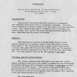 This is the thirteenth draft of a contingency plan originally developed by the Department of Defense and the Department of State for intervention by the United States in the event of a military coup in Cuba.