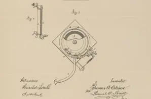 Full Citation: Drawing for a Phonograph; 5/18/1880; Patents Issued to Thomas A. Edison, 1868 – 1911; Records of the Patent and Trademark Office, Record Group 241; National Archives at College Park, College Park, MD. [Online Version, https://docsteach.org/document/drawing-for-a-phonograph/, February 6, 2026]