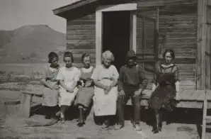 The original caption for this photograph reads: Dry-Land Farmer and His Family on the Flathead Reservation Near Niarada, Montana. It was taken by the Bureau of Indian Affairs during the Flathead Irrigation Project. The Project was initiated to determine rights and distribute water originating on the Flathead Indian Agency in Montana to both tribal and non-tribal land. The establishment of the Reservation in 1855 preceded Montana statehood by nearly 35 years and presented many challenges in establishing seniority and providing for equitable distribution of water for the irrigation of farms and ranches.