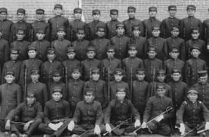 This is one of a small collection of photographs of the Albuquerque Indian School, which was established in 1881 to provide off-reservation industrial training to the Indians of the Southwest. By 1912, the school had 8 primary grades and over 300 students; by 1925 enrollment increased to over 800 students and grades 11 and 12 were added. The Albuquerque Indian School continued operating until 1982, when its program was transferred to the Santa Fe Indian School.