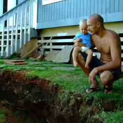 Full Citation: [Earthquake] Kapaau, HI, October 25, 2006- Oliver Kolly with son Oliver inspect the changed landscape in their backyard after a series of earthquakes struck this region. Adam DuBrowa/FEMA.; 10/25/2006; Records of the Federal Emergency Management Agency, Record Group 311. [Online Version, https://docsteach.org/document/earthquake-kapaau-hi-october-25-2006-oliver-kolly-with-son-oliver-inspect-the-changed-landscape-in-their-backyard-after-a-series-of-earthquakes-struck-this-region-adam-dubrowafema/, April 7, 2026]